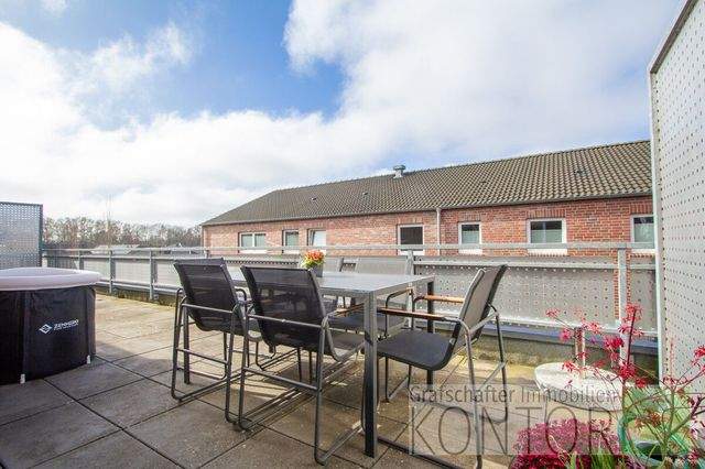 Das absolute Highlight der Wohnung stellt die großzügige Dachterrasse in idealer Süd-West-Ausrichtung dar. Mit einer Tiefe von ca. 2,70 m bietet sie vielfältige Nutzungsmöglichkeiten und erweitert den Wohnraum spürbar nach außen. Ob entspannte Stunden in der Sonne, gesellige Abende oder eine grüne Oase - diese Terrasse hebt den Wohnwert dieser Immobilie auf ein besonderes Niveau.